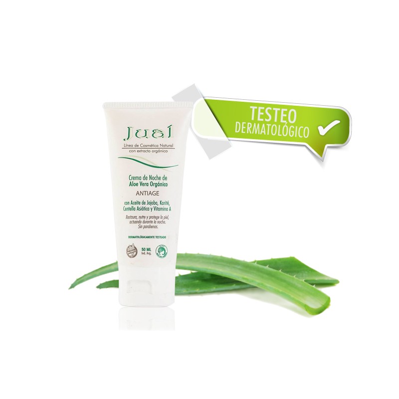 - It presents 5 active ingredients: Organic Aloe Vera with super nourishing action, regenerating the epidermis during the night; Shea with a high content of unsaponifiables that improves skin tone; Centella Asiatica with firming and stimulating action of collagen biosynthesis; Jojoba Oil powerful antioxidant and emollient; Vitamin A with its re-epithelizing power, essential for keeping the skin elastic and young, protecting it from early wrinkles.